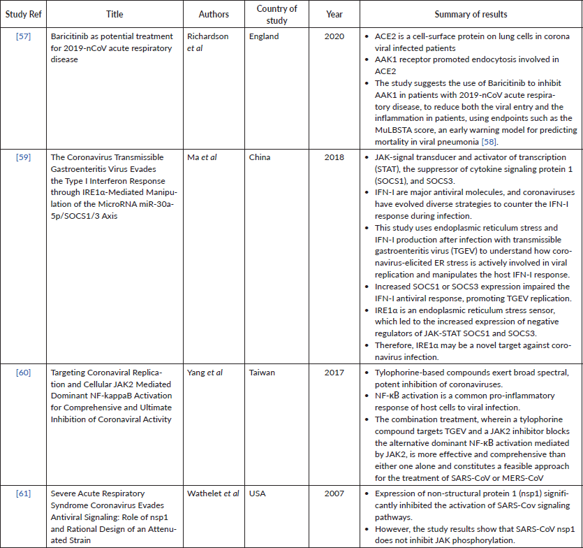 Supplementary Table 5. Current studies investigating COVID-19/ other coronavirus strains and JAK inhibitors