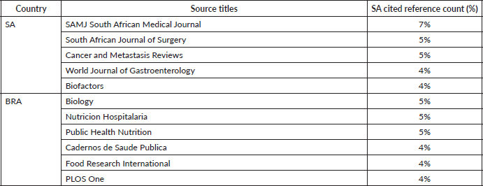 Publications related to SA that had the most cited reference count were published through local journals, while BRA had most cited reference count papers published through international journals, as outlined in Table 4.