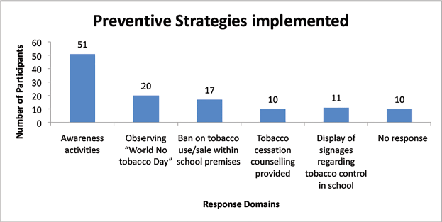 Lack of tailor-made school-based tobacco-related curriculum can be one of the major contributing factors towards it. Such anti-tobacco campaigns can be an effective strategy to curb tobacco use amongst young people [20].