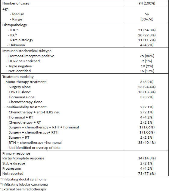 Table 1. Summary of cases reported on the literature on eye metastasis of breast cancer origin.