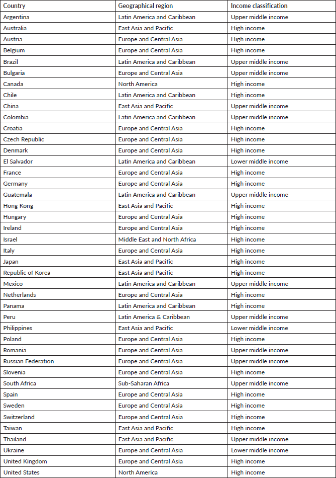 15. The World Bank World Bank country and lending groups [Internet] [https://datahelpdesk.worldbank.org/knowledgebase/articles/906519-world-bank-country-and-lending-groups] Date accessed: 13/11/20