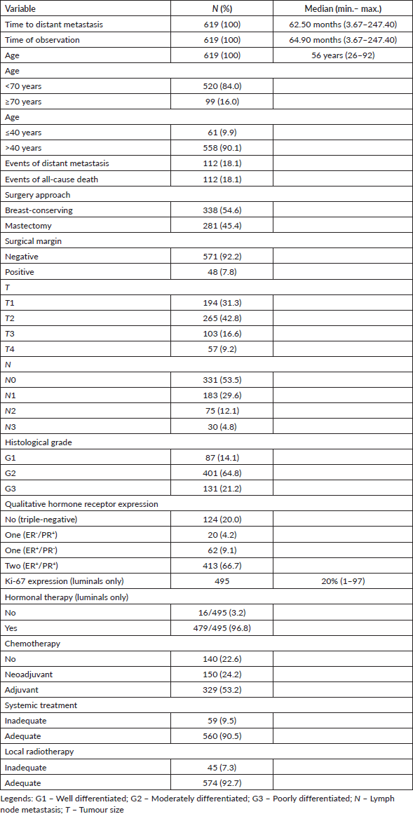 To identify the risk factors associated with the development of distant metastases and death in patients with luminal breast cancer, analyses only in this subgroup were carried out.