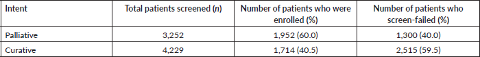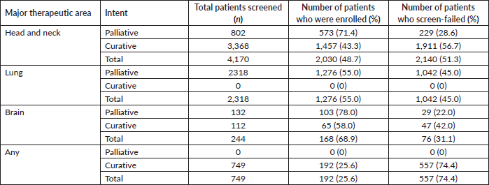 Table 4. Total, enrolled and screen-failed patients by intent of trial.