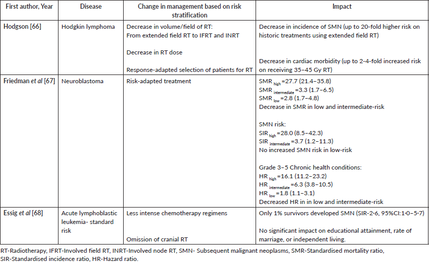 Table 3. Impact of risk-adapted treatment in pediatric oncology on late effects profile in CCSs (66–68).