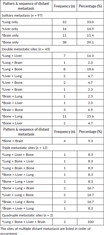 Table 3. Pattern and sequence of occurrence of distant metastasis.