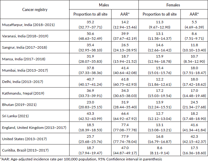 Table 3. Comparison of tobacco-related cancer rates in Muzaffarpur with other Indian cancer registries as well as those of the neighbouring and developed countries.