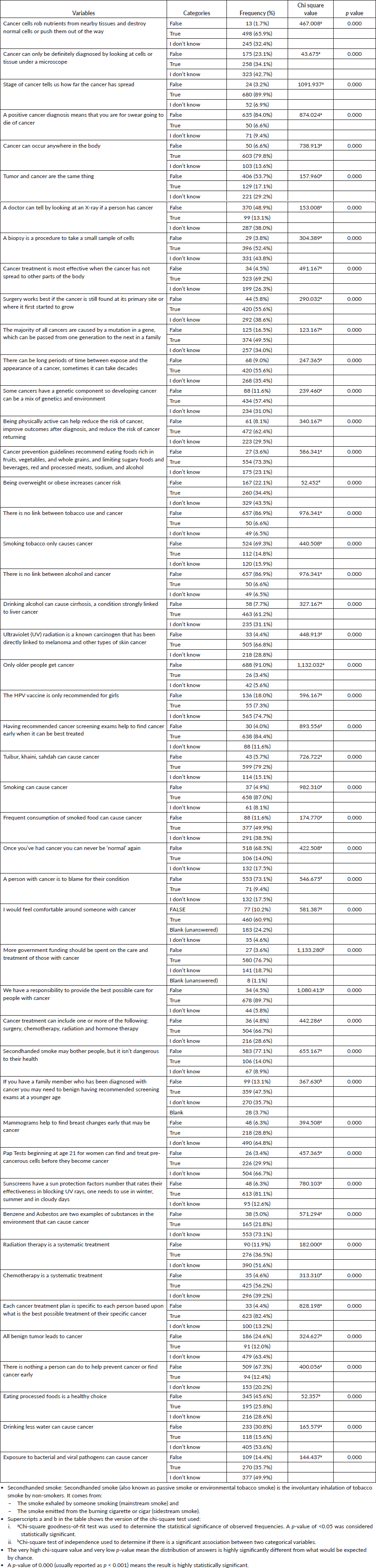 Table 1. Frequency of participants with knowledge and awarness of cancer (n = 756)