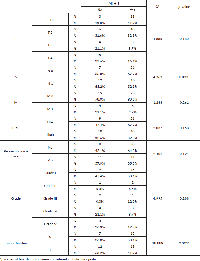 Table 5. Relation between MLH1 immunoexpression and clinicopathological features.