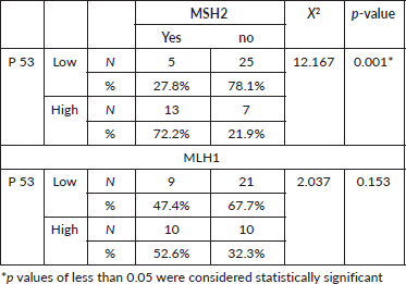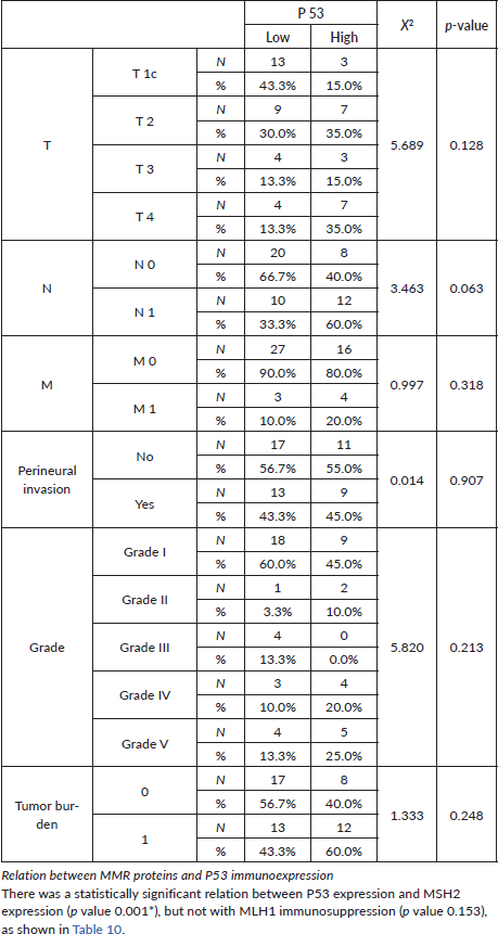Table 10. Relation between P53 expression and MMR proteins immunoexpression.
