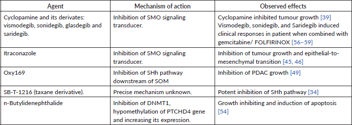 Table 2. Agents that target SHh pathway and their effect on PDAC.