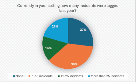 Figure 2. Percentage of responses to the question: ‘How many incidents were logged last year in your setting?’