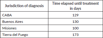 Table 6. Days between the date of the first consultation related to the disease and the start of treatment according to jurisdiction of diagnosis.