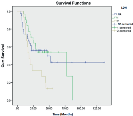 Figure 3. Kaplan Meier curve showing the effect of LDH value on recurrence.