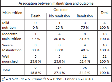 • Severe malnutrition was present in 23.2% of patients, but this did not significantly influence induction outcome.