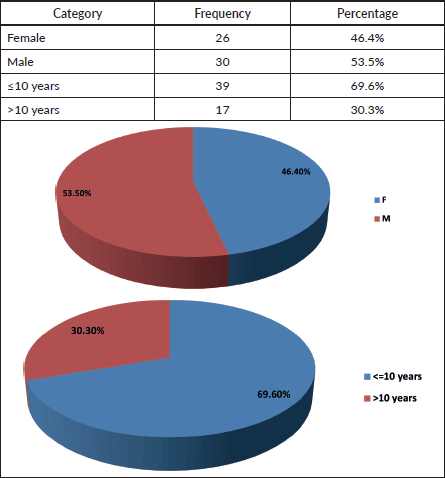 Of the 56 patients analyzed: