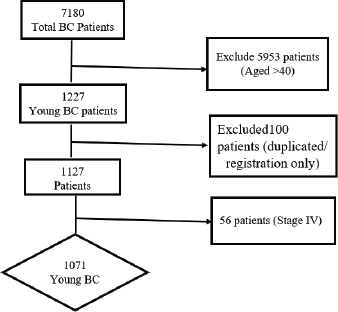 This study included young BC patients aged ≤40 years (BCY) diagnosed between 2008 and 2017 in two centers in Alexandria, Egypt. The incidence of BCY was 17% and increased gradually during the study period.