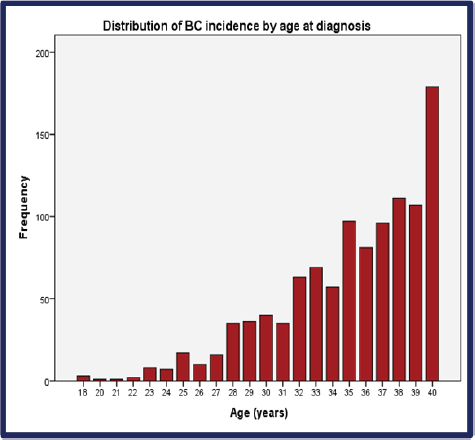 Figure 2. Distribution of BC incidence by age at diagnosis. BC: Breast cancer.