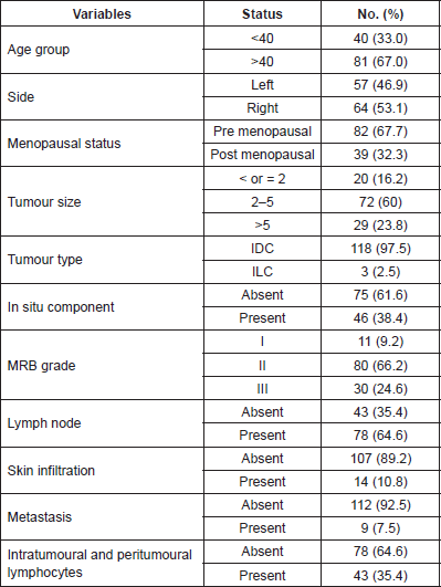 Table 1. Clinicopathological profile of breast carcinoma patients.