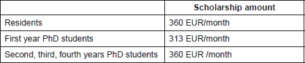 All residents and PhD students, whose tuition fees are covered, receive a scholarship (Table 5). When a trainee works at a residential clinical base he or she gets a salary: a junior resident (First, second year)–390 EUR/month, a senior resident (third, fourth, and fifth years)–495 EUR/month.