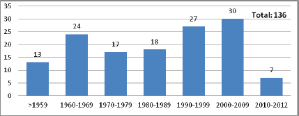 Figure 4. PhD theses defended in National Cancer Institute (1948–2012).