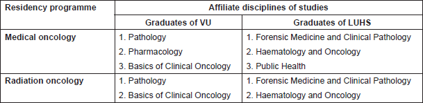 The content of programmes among the universities of Lithuania varies slightly. However this is similar to other countries. According to the ESMO Medical Oncology Status in Europe Survey (MOSES) data, 48% (20/41 countries) have reported that the national situation is heterogeneous, with significant differences in the content and structure of undergraduate teaching between universities in the same country [8].