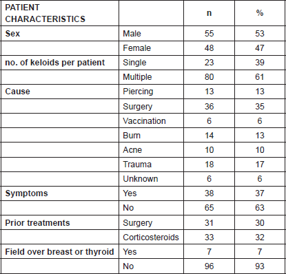 Table 1. Characteristics of the patients and their keloids (n = number).