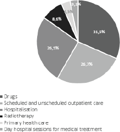 Figure 1. Percentage of annual costs for cancer treatment in Portugal, broken down by line of analysis.