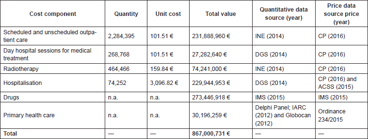 Table 4. Costs of cancer treatment in Portugal, broken down by line of analysis and data source.