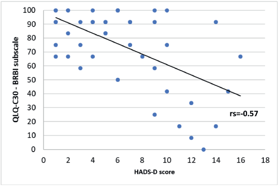 Figure 10. Correlation between HADS-D and the body image (BRBI) subscale of EORTC QLQ-C30.