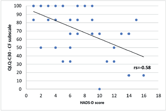 Figure 8. Correlation between HADS-D and the cognitive functioning (CF) subscale of EORTC QLQ-C30.