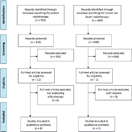 Figure 1. Flow diagram of the published literature stratified for proton and CIRT.