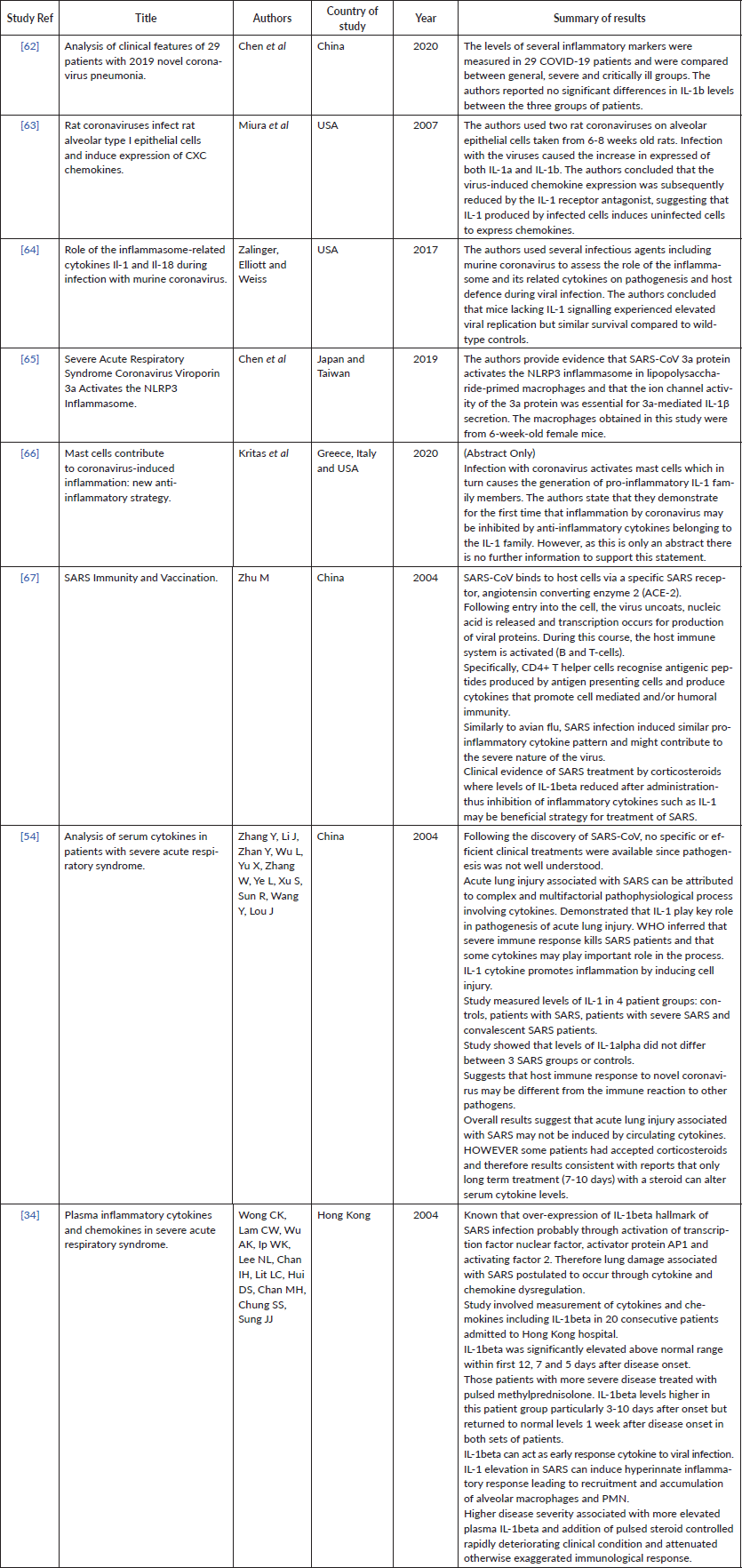 Supplementary Table 6. Current studies investigating COVID-19/ other coronavirus strains and IL-1 blockade.