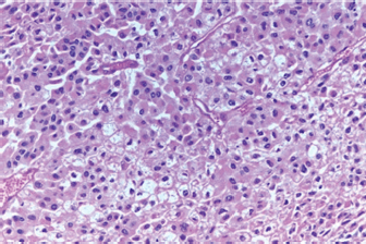 Figure 3. Histopathology of the mass showing a diffuse sheet-like growth pattern with a compact eosinophilic cytoplasm throughout, resembling oncocytic cells.