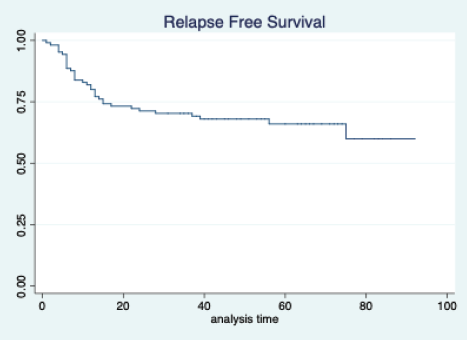 Methods: We included all patients who had non-metastatic TNBC treated with neoadjuvant chemotherapy, followed by surgery with/without adjuvant radiotherapy between September 2011 and November 2017. PDL1 testing was carried out on pre-treatment tumour cells with immunohistochemistry (Ventana SP142) and was correlated with pathological response, relapse-free survival (RFS) and overall survival (OS). PDL1 staining was interpreted as negative or positive (more than 1% staining).