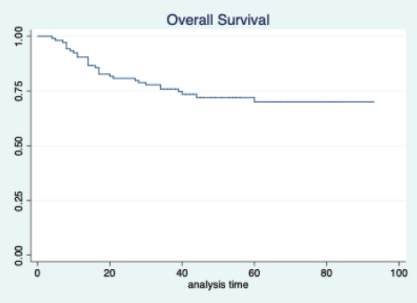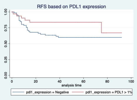 Results: A total of 107 patients were included for analysis with a median age of 47 years (28–65 yrs). The PDL1 expression of more than 1% was seen in 31 (28.97%) patients. After a median follow-up of 55 months (range: 4–93 months), median RFS and OS were not reached. PDL1 expression did not affect the achievement of pathological complete response (pCR). However, PDL1 expression improved OS (p = 0.016) and trend towards RFS (p = 0.05). Patients who achieved pCR had better RFS and OC compared to those who did not.