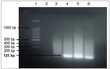Amplification of EBV DNA gene (EBNA-1) with nested PCR resulted in a DNA band of 125 bp (Figure 1), suggesting that the primer design was correct and the band of 125 bp indicated real EBV DNA.
