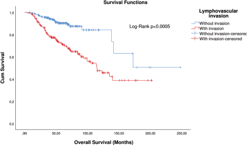 Finally, it was tested whether treatment could impact in the prognosis value of lymphovascular invasion. Although the vast majority of patients who did not receive adequate treatment were due to contraindication, this may result in a modification of the prognostic factor of lymphovascular invasion.