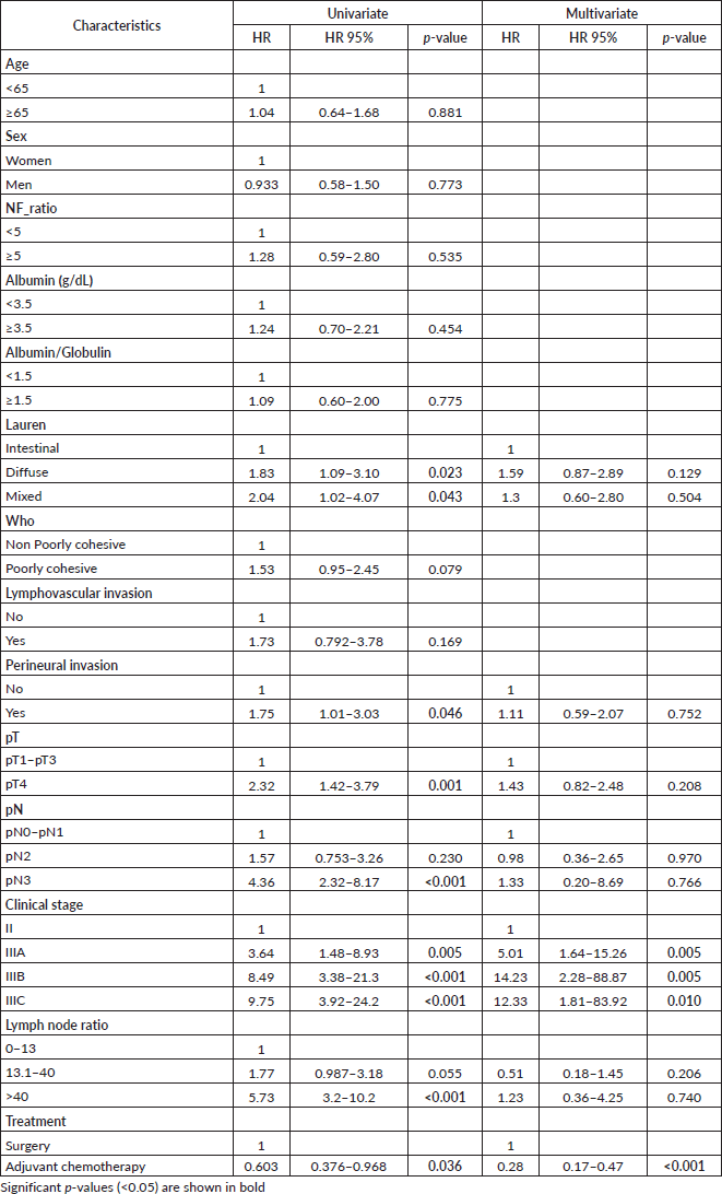 Table 4. Prognostic factor for OS, univariate and multivariate analyses.