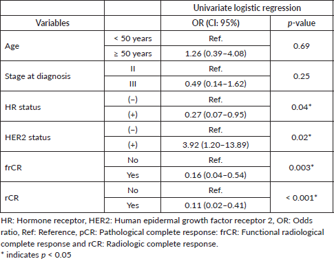 Table 2. Univariate logistic regression for pCR using clinical and imaging variables.
