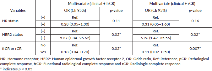 Table 3. Multivariate logistic regression for pCR adjusted by clinical variables and frCR or rCR.