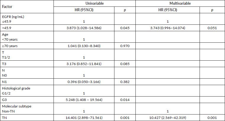 Table 3. Multivariable analysis of overall survival of patients with TN breast tumour (n = 44).