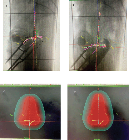 Table 2. Comparison of dose and volume parameters between the two groups.
