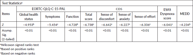 There was a reduction in effort, anxiety, discomfort and total scores of breathlessness on CDS over a follow-up period of 7 days (Figure 5).