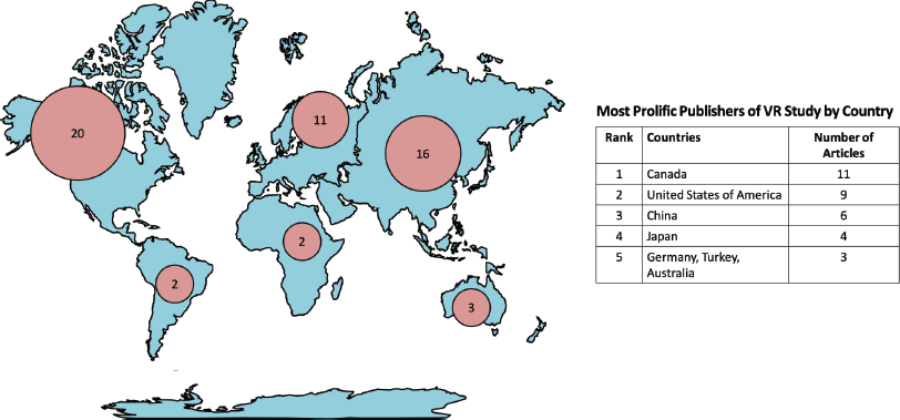 Figure 3. Number of VR studies related to oncology by continent and country.