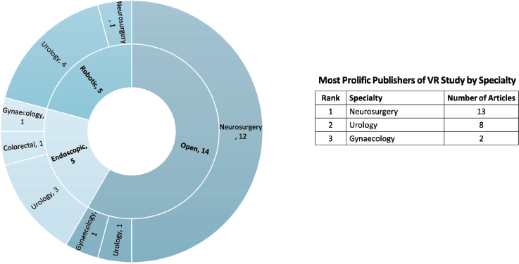 Figure 4. Number of VR studies by surgical modality and specialty.