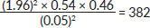 where n is the sample size for populations greater than 10,000 people which is calculated using the formula developed by Cochran as: n = Z2 p q/d2