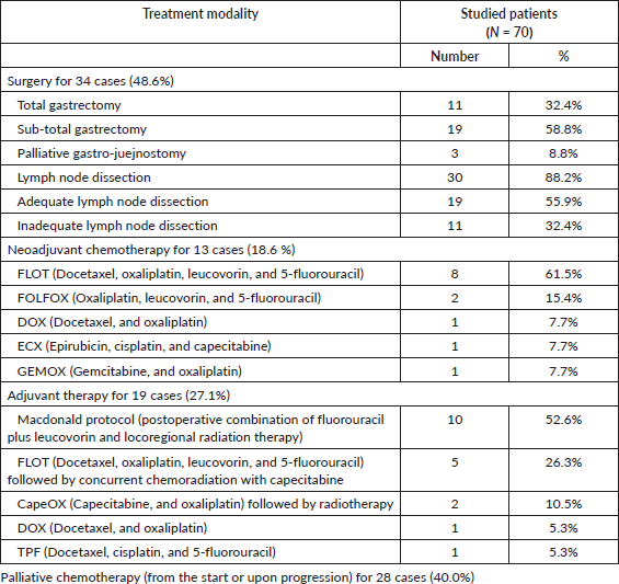 Methods: We conducted a retrospective analysis of the complete medical records of patients with confirmed GAC at the Ain Shams University Clinical Oncology Department from January 2017 to December 2020.