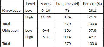 Table 2. Frequency distribution for level of knowledge and utilisation.