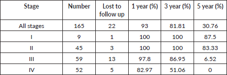 Table 4. OS as per clinical stage in months (excluding lost to follow up patients).