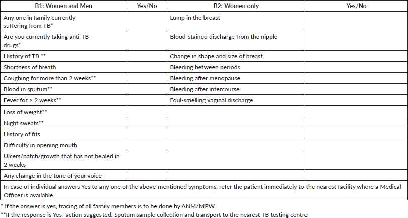 Government of India (GOI) adopted a policy in the year 2010 to implement breast, cervical and oral cancer screening with clinical breast examination (CBE), visual inspection with acetic acid (VIA) and oral visual inspection, respectively, through the National Programme for Prevention and Control of Cancer, Diabetes, Cardiovascular Diseases and Stroke (NPCDCS) [5].